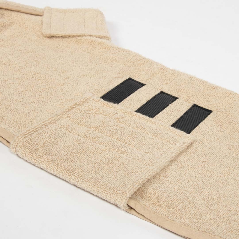 Nach dem Baden, Schwimmen oder einem Spaziergang im Regen hält der Noir Japandi Hundebademantel Ihren Hund warm und trocken. Das weiche, hochsaugfähige Baumwollmaterial nimmt Feuchtigkeit effizient auf und hilft dem Fell, schneller zu trocknen. Der Bademantel bietet eine bequeme Passform mit verstellbarem Anti-Haar-Klettverschluss, wodurch er leicht an- und auszuziehen ist. Erhältlich im stilvollen beigen Japandi-Look.