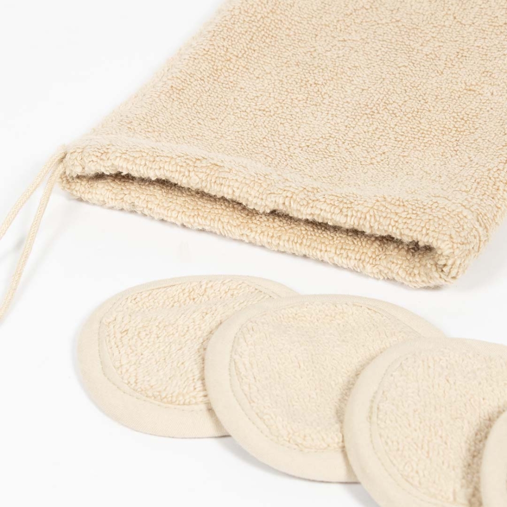 - Wiederverwendbare Baumwollpads mit einer Tasche für bessere Kontrolle
