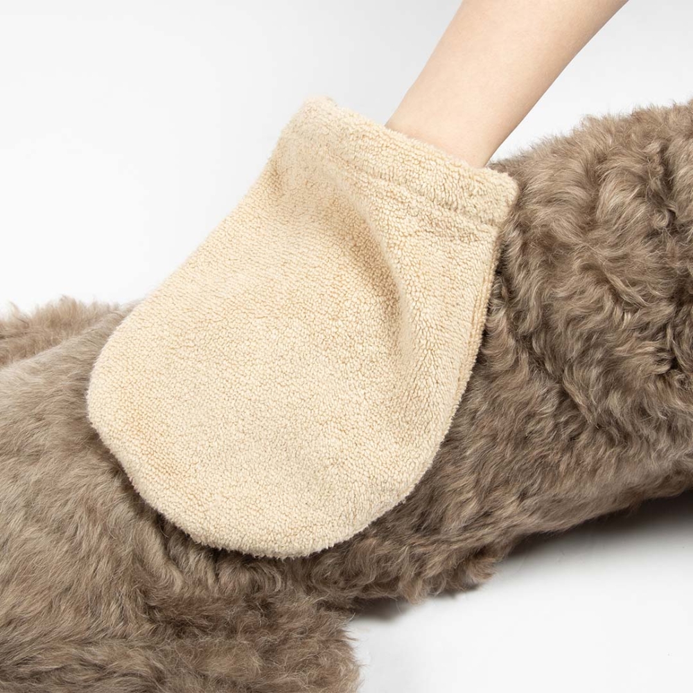 - Aufbewahrungsbeutel und Waschhandschuh in einem