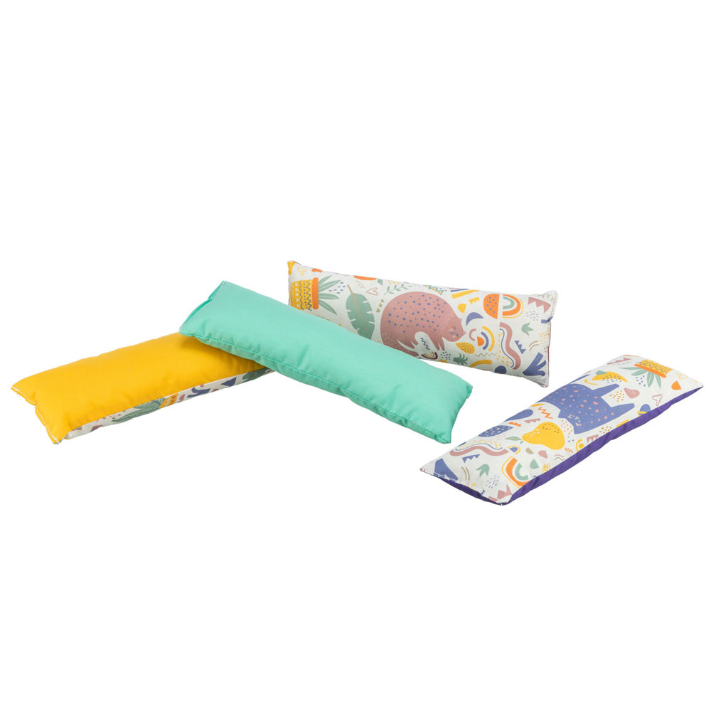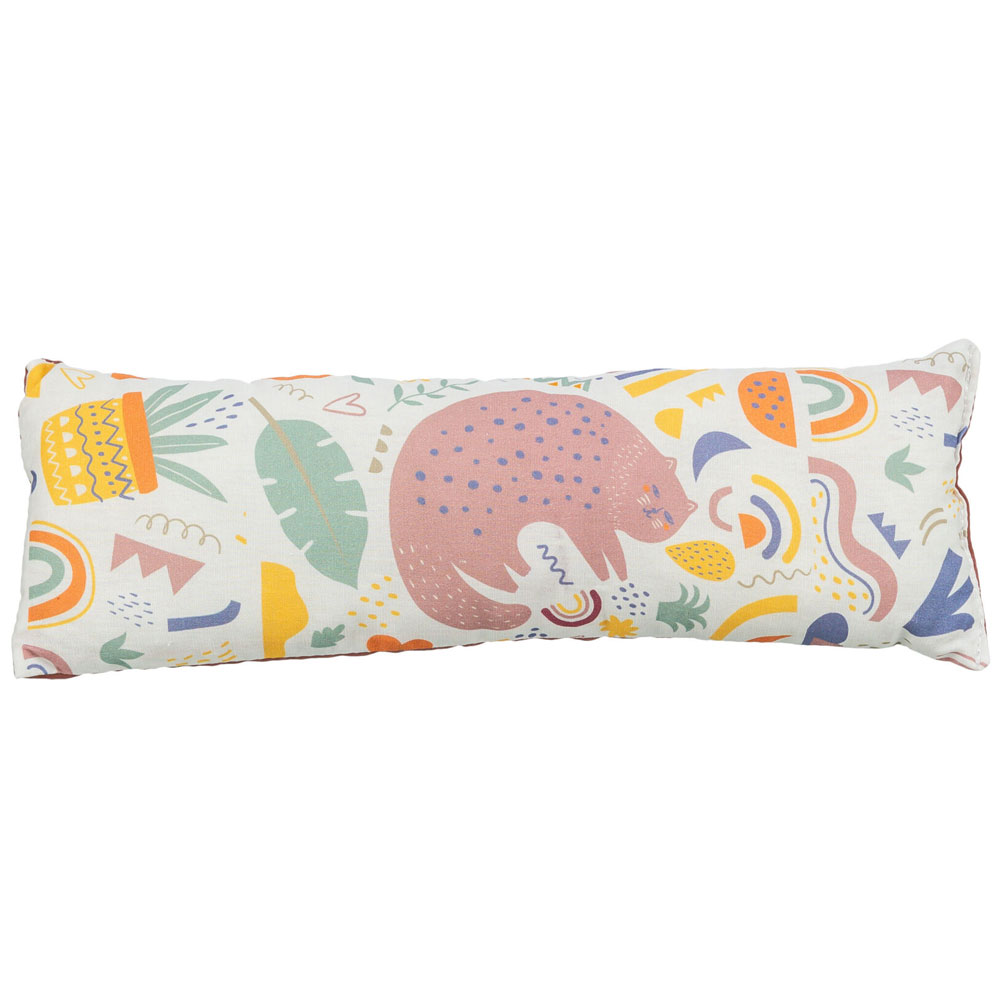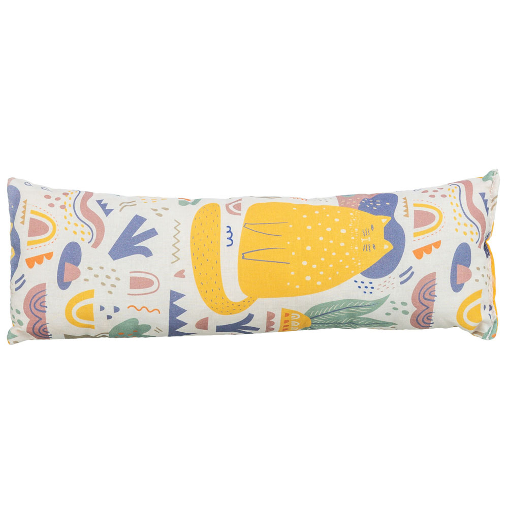 Der Bezug der Kissenrolle besteht aus Baumwolle.