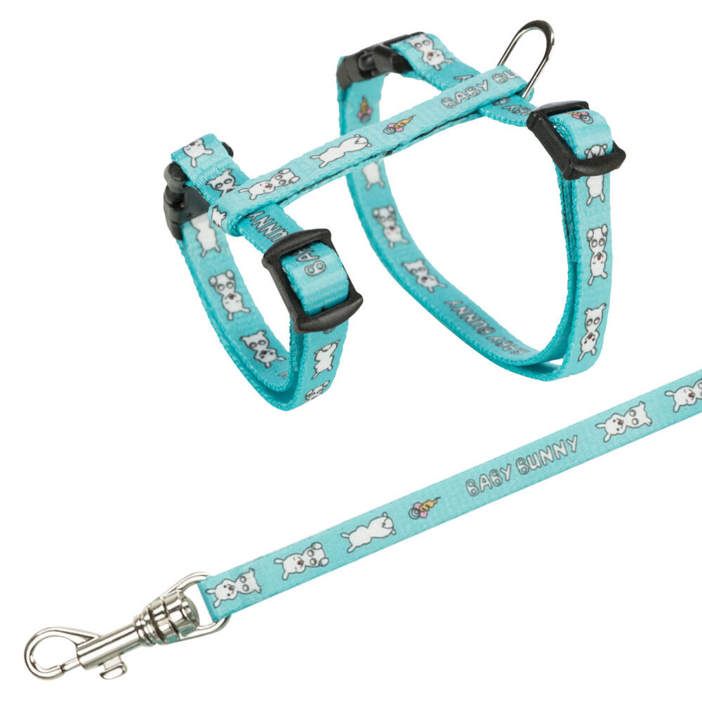 Die Garnitur für Zwergkaninchen und junge Kaninchen besteht aus stabilem Nylon und ist stufenlos verstellbar. Mit Schnappverschlüssen.